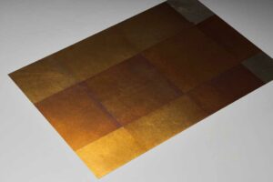“It is a fumigated silver leaf in sulfur that discolor into RED by the sulfurization reaction. Silver is discolored into red, blue, and black by smoking in sulfur. The technique of smoking the silver leaf by sulfur was originally developed in Japan. It is a very special skill that can be done by limited craftsmen. Because each leaf’s expression is different and not possible to produce the exact same color, there is a feature that you can actually enjoy as a pattern.”