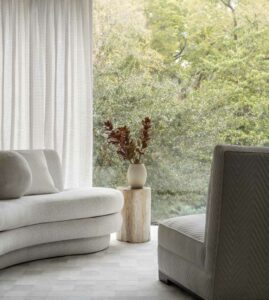 For Spring 2022, Perennials invites designers to approach spaces with a fresh perspective with the Cloud 9 collection of fabrics and rugs. Cloud 9 is filled with clean neutral 100% solution-dyed acrylic textiles, dripping in understated elegance. Ten new fabric qualities offer timeless panache, while five new rug designs provide a sophisticated foundation for any space.