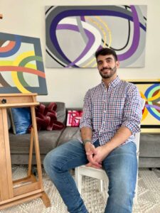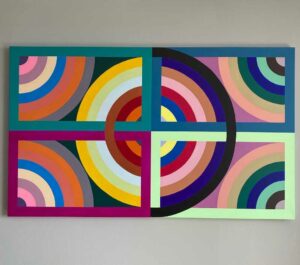 My unique perspective is heavily influenced by geometric curvature and the power of color. Taking inspiration from the works of my grandfather, Calder, and Frank Stella, my goal in sharing both my original and commissioned works with others, is that they may find energy and inspiration as I did.