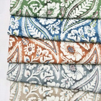 The Marvic Design Studio has its own rich archive and in creating the Antibes Collection used two original French printed designs as a starting point. The first Textile is a floral block printed onto line from the 19th century; the second a 20th century resist-dyed cotton with a stylized floral trellis. These vintage pieces underpin the fresh, youthful vivacity of Antibes leading it substance and a provenance directly connected to its French aesthetic.
